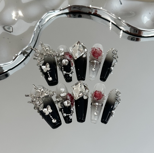 Handmade nails,shining nails,rose red,extra long coffin,butterfly,diamond,cat eye armor,banquet,for everyone