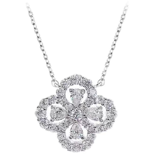 Luxury jewelry, zircon alloy, four-leaf clover necklace, silver, for everyone