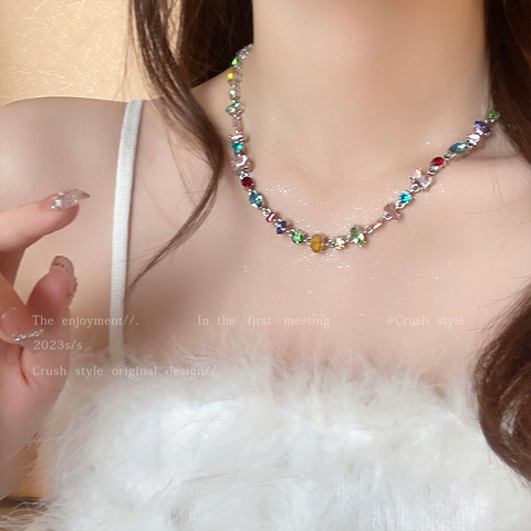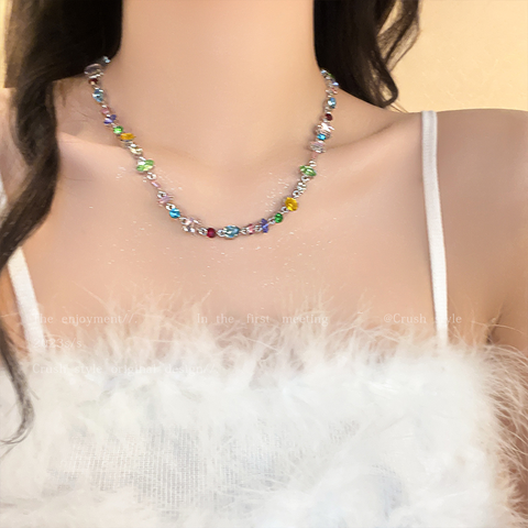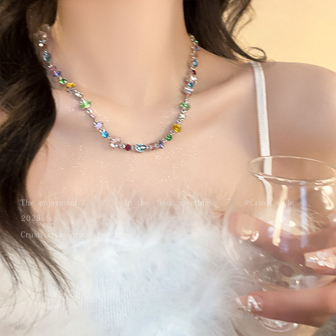 Dear friends, today I recommend to you a super cute sweet candy color zircon collarbone chain, pink love with rainbow accessories, let a person at a glance heart! Not only looks exquisite, but also lets you shine a unique personality. Get started and make yourself more beautiful!